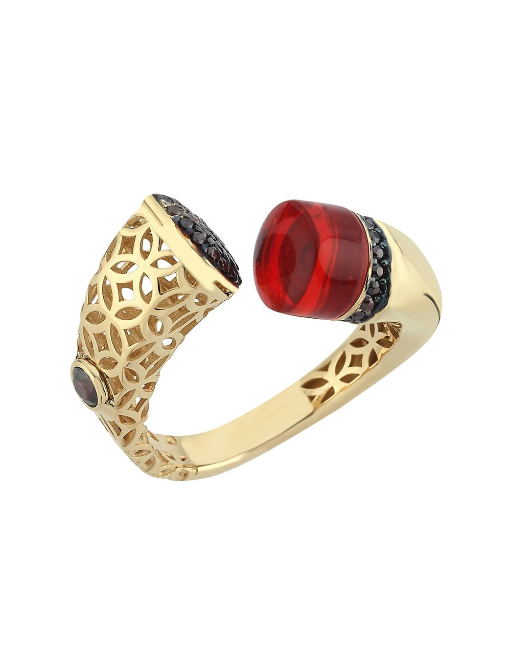 يتميز خاتم الذهب الأصلي المرصع بالحجر الأحمر ، المصنوع بلمسات أصيلة، بتصميم فريد يجمع بين براعة الحرفيين من العصور الماضية وروعة الحاضر. يضفي نسيجه المصنوع يدويًا، إلى جانب الزخارف التقليدية، حضورًا آسرًا يجمع بين عبق الماضي وقوة الحاضر.