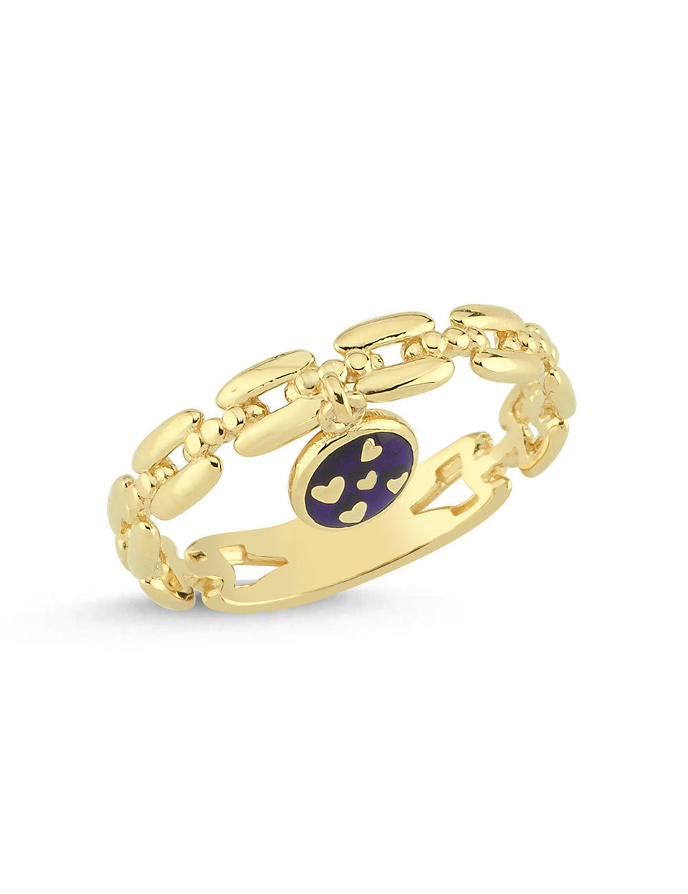 Zarafeti hareketli bir detayla buluşturan Midnight Heart Altın Yüzük, ucunda zarifçe sallanan lacivert kalp motifleriyle modern ve romantik bir görünüm sunar. Altının sıcak tonuyla lacivertin derin rengi uyum içinde parıldar.