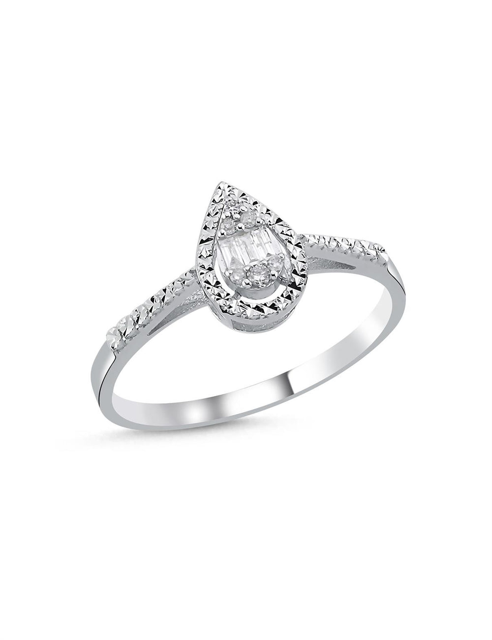 Zamansız zarafetin modern yorumu… 0,06 Karat Damla Baget Pırlanta Yüzük, keskin hatlarıyla sofistike bir ışıltı sunar.